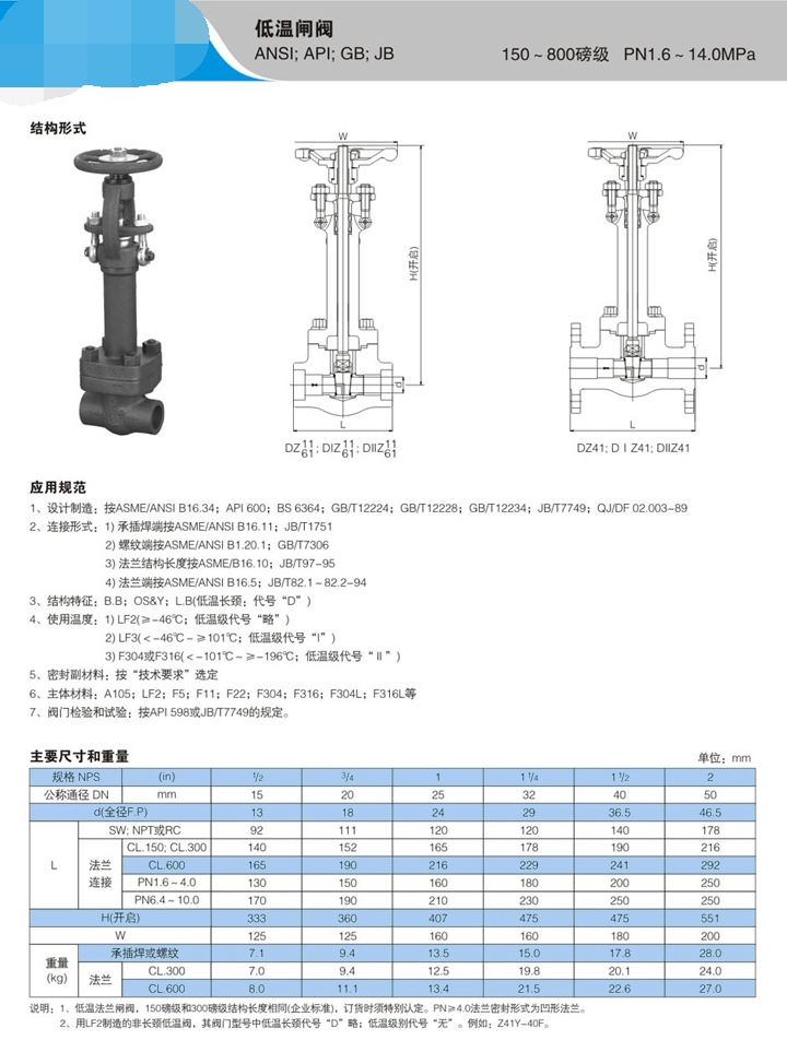 商務(wù)合作:15867725552@163.com『DZ61H鍛鋼低溫承插焊閘閥』供應(yīng)商,本司供應(yīng)的【低溫閘閥】質(zhì)量先行、價(jià)格合理、售后服務(wù)較完善。『DZ61H鍛鋼低溫承插焊閘閥』適用于輕重工業(yè)及樓宇管道。流體前進(jìn)的道路上,讓滄海閥門為您排憂解難!【閘閥】可應(yīng)用于:化工、石化、石油、造紙、采礦、電力、液化氣、食品、制藥、給排水、市政、機(jī)械設(shè)備配套、電子工業(yè),城建等領(lǐng)域。 產(chǎn)品名稱DZ61H鍛鋼低溫承插焊閘閥產(chǎn)品型號(hào)DZ11Y、DZ61Y